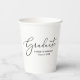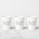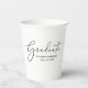 Modern graduation party paper cups featuring "Graduate" in an elegant script and the grad's name and class year in simple modern typography.