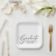 Elegant graduation party paper plates featuring "Graduate" in a chic script and the grad's name and class year in simple modern typography.