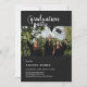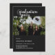 Celebrate your milestone with this elegant graduation party invitation featuring a modern black layout and a joyful photo of the graduate. The chic handwritten "graduation party" script adds a personal and warm touch, while the clean serif font keeps it classy and easy to read. Perfect for high school or college graduates looking for a sophisticated way to invite friends and family to their big celebration.