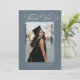 Chic graduation thank you card with graduate photo, elegant script, and space for school name and class year. Background colour is slate blue.
