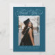 Chic graduation thank you card with graduate photo, elegant script, and space for school name and class year. Background colour is teal.