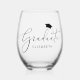 An elegant stemless wine glass to toast and celebrate the graduate. "Graduate" is written in a chic modern script with a grad cap on top. Personalise with her name.