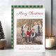 Personalised Elegant Script Green Plaid Christmas Photo Holiday Card.