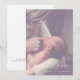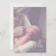 This minimalist Baptism invitation card features a single vertical photo, a "baptism´´ header in the elegant, handwritten script, and your baby´s name in elegant typography at the bottom. The writing is in white, so the dark colour background of the photo would be best. The reverse features all details crowned with a simple cross. Customise this minimalist, elegant baptism invitation card by clicking on the ´´Edit´´ button and replacing the template text and photo with your own!
