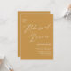 Elegant Script Honey Gold Minimalist QR Code Rehearsal Dinner Invitation Card. Celebrate your special day with this elegant and beautiful wedding invitation card to beautify your special occasion. All the texts are pre-arranged for you to personalise easily and quickly with your own details. If you need further customisation or matching items, please let us know – we would love to help.