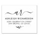 Create your own custom Elegant Script Initials | Botanical Return Address rubber stamps using these templates by invintage. This modern design features your custom initials in a swirly hand-written script (don't delete the first and last characters - they're the swirls!) with your name and return address in a simple typography with a botanical sprig of heather at the bottom.