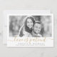 Modern script "love is patient" in gold colour, with couple's photo, simple and elegant. inform your wedding guests the updated information with this photo announcement.