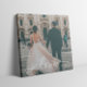 Elegant newlyweds wedding canvas print with the word love in a script font, a custom photo, Mr. and Mrs. and their surname, and an overlay semi-opaque layer to give it a unique and dainty look. To remove this layer please click the button to edit the design. To centre the image click "crop".
