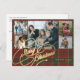 Elegant script Merry Christmas 5 photo red plaid Holiday Postcard