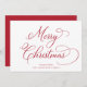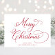 Elegant holiday card featuring "Merry Christmas" showcased in a stylish red calligraphy script. Add your personalised greeting and family name in simple modern red lettering.