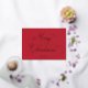 Elegant red holiday card featuring "Merry Christmas" showcased in a stylish calligraphy script and your family name in simple modern lettering, all rendered in your choice of genuine silver or gold foil. On the back, add two photos and your personalised greeting.