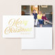 This elegant script photo holiday card featuring the text "Merry Christmas" in gold foil on the front.