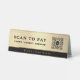 Make a memorable impression with our Elegant Script Metallic Gold Scan To Pay Qr Code Table Tent. This simple yet elegant design features an elegant script for the text "reserved" against a faux brushed metallic gold background. It will definitely elegant the company's branding and impressed your customers.