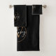 Elegant Script Monogram Black and Gold Bath Towel Set