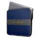 Elegant Script Monogram Dark Navy Blue Grey & Gold Laptop Sleeve