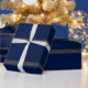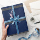 Elegant Script Monogram Dark Navy Blue Grey & Gold Wrapping Paper
