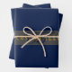 Elegant Script Monogram Dark Navy Blue Grey & Gold Wrapping Paper Sheet
