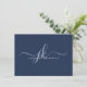 Personalised elegant, minimalist note cards with simple calligraphy script monogram or initials and name in navy blue. CHANGES: The text font style, colour, size and placement and/or background colour can be changed by clicking on EDIT in the PERSONALIZE section for a custom look. ASSISTANCE: For help with design modification or personalisation, colour change, resizing, transferring the design to another product or if you would like coordinating items, contact the designer BEFORE ORDERING via the Zazzle Chat MESSAGE tab below or email makeitaboutyoustore@gmail.com.
