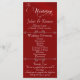 This romantic design features an elegant crimson red background with the wedding ceremony details & thank you on the front, the wedding party members, and heart monogram on the back. Available in several colours to coordinate with your wedding theme. Designed to coordinate with the "Romantic Scroll Hearts & Calligraphy" Wedding Collection.