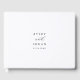 This elegant script monogram wedding guest book is perfect for a simple wedding. The minimalist black and white design features fancy romantic typography with modern glam style. Customisable in any colour. Keep the design minimal and classy, as is, or personalise it by adding your own graphics and artwork. Personalise the front cover with the names of the bride and groom and the wedding date.