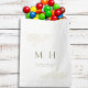 Add a refined touch to your celebration with this wedding favour bag—a perfect way to present sweet treats or small gifts. This elegant wedding treat paper bag features lush greenery, graceful calligraphy script, and timeless typography. Designed with a simple, minimalist style and a personalised monogram, it’s a classic and stylish addition to your wedding day details.