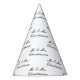 Elegant script Mr and Mrs wedding party cone hats. Fun props for trendy wedding games and more. White or custom colour.