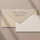 Return address stamp featuring your Mr & Mrs family name in an elegant script and your address in simple typography.
