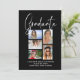 Elegant Script Multi Photo Graduation Announcement features five of your favourite photos of your college or high school graduate with the swirly modern white calligraphy script overlay "Graduate". Personalise by editing the text in the text boxes provided. Simple, stylish and classy. Created by ©Evco Studio www.zazzle.com/store/evcostudio