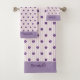Elegant Script Name Flowers, Blush, Violet Striped Bath Towel Set