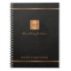 Luxury exclusive looking monogrammed stylish personalised notebook journal featuring a faux gold copper metallic glitter square and lines over a stylish classy black leather look background. +++++++++ Personalise it with your text, your name and monogram initials.