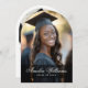 Arch shaped photo announcement card featuring your photo and the graduate's name in an elegant caliigraphy script font with the year below. Add an additional photo and a custom message on the back.