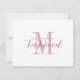 A red script name monogram in a modern sans script type, contrasted with serif initial and first name. A modern minimalist style stationery notecard. Order in larger quantities for greater savings. Red and pale red.
