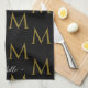 Elegant Script Name Template Monogram Black & Gold Tea Towel