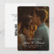 Elegant Script Names Custom Photo Wedding Save the Date is a timeless design with amazing overlay typography that will allow you to spread the news of your upcoming celebration. On the back you can give info about your website and a qr code for easy viewing