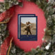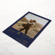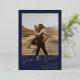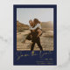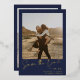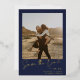 Elegant script calligraphy simple 2 photos navy blue and real gold foil wedding save the date.