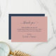 Elegant modern navy blue and blush wedding thank you card. Matching items available.