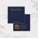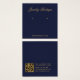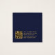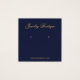 A simple navy and gold earring display card: just golden text on navy blue background. The name is written in an elegant calligraphy' under it, the erring places indicated by two very small circles. The website written close the lower border.