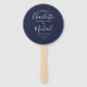 Elegant Script Navy Blue Wedding Program Round Hand Fan