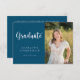 Elegant Script Navy Blue White Photo Graduation Invitation