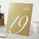 An elegant ombre gold background wedding pedestal sign featuring a simple ombre gold background with stylish table numbers. Ideal for modern pink theme wedding, and fashion events.