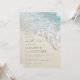 Perfect for destination weddings, this elegant summer beach wedding invitation with classy beautiful handwriting script features a close-up photo of a beach shoreline with an ocean wave and seafoam.