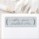 Chic, modern and simple wedding return address label with your names in off-black elegant handwritten script calligraphy with a stylish touch of rustic foliage on a pastel blue background. Simply add your names and address. Exclusively designed for you by Happy Dolphin Studio. If you need any help or matching products please contact us at happydolphinstudio@outlook.com. We're happy to help you make your wedding the most beautiful day!