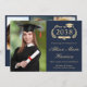 Elegant Script Photo Blue Gold College Graduation Announcement