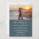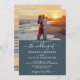 Elegant script photo wedding invitation template boho blue with two photos, simple black on white.
