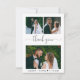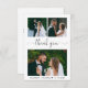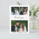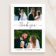 Elegant wedding thank you card featuring "thank you" in a stylish script, a collage of 3 wedding day photos and your first names and wedding date joined together with a heart. On the back, personalise your thank you message and add your names in a signature-like script.