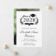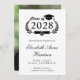 Modern college graduation announcement featuring "Class of" in an illustration of a laurel wreath incorporating a grad cap topper and diploma and the graduate's name in an elegant script. Add their school, major, honours or future plans. The grad's photo fills the back of the card.