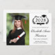 Modern college graduation announcement and party invitation featuring "Class of" within a laurel wreath, a grad cap and a diploma, a photo of the graduate and their name in an elegant script. Add their school, major, honors or future plans. On the reverse side, add the party details.