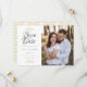 This elegant save the date card features your photo and beautiful gold doves and hearts above a script save the date and your names, date and venue. The reverse features a doves and hearts pattern. You can personalise the background colour on the front and reverse to suit. Designed by Thisisnotme©