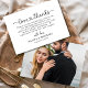 Capture the beauty of your special day with our Elegant Script Photo Wedding Thank You Card. Featuring refined script typography and space for a favourite wedding photo, this timeless design blends classic romance with personalised charm. The minimalist layout highlights your photo while the graceful script adds an elevated, sophisticated touch. Perfect for couples who want to send heartfelt gratitude with style, this card creates a lasting keepsake your guests will cherish. Customise with your names, wedding date, and a personal message.
