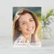 Elegant graduation thank you card featuring the graduate's photo overlayed with "thank you" in a stylish script and their name, school and class year in simple typography. On the reverse side, personalise a thank you message and add the graduate's name in a signature-like script.